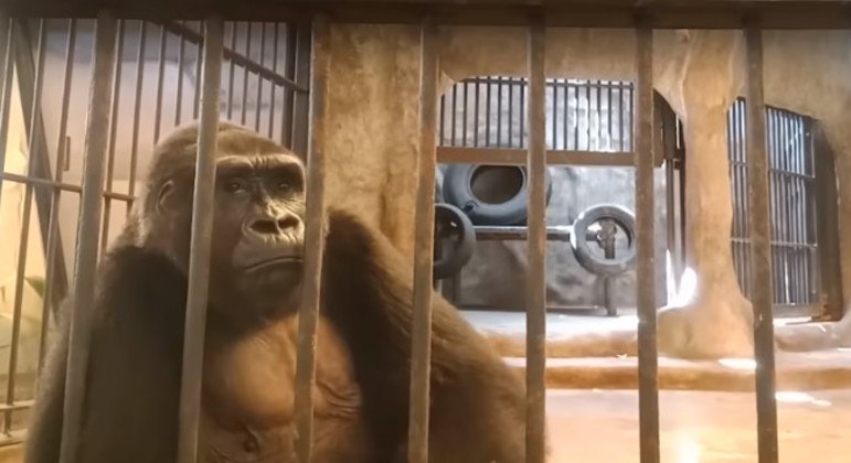 El gorila se ha mantenido en una jaula estrecha y sucia con barras de metal oxidadas desde que llegó de Alemania en 1990. El animal nunca ha puesto un pie en suelo de cemento.
