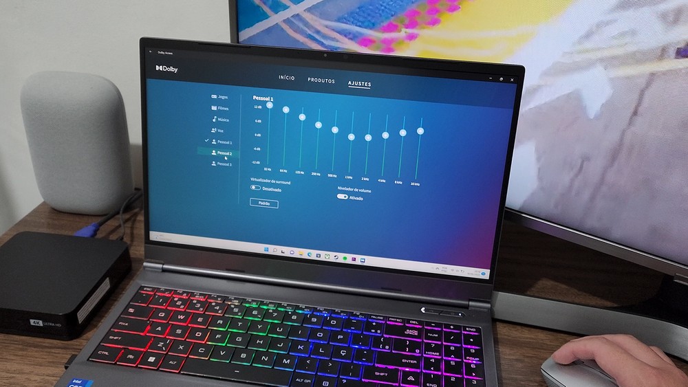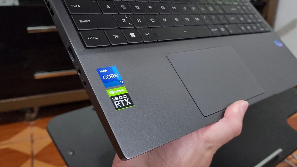 Viene con un teclado retroiluminado estándar ABNT2, con LED RGB. Aquí ya tenemos un elemento que a la mayoría de los jugadores les encanta. Las luces son totalmente personalizables en la aplicación Avell Custom Control, donde puedes elegir la transición de color, qué sombras aparecerán o si solo quieres dejar una opción estática.