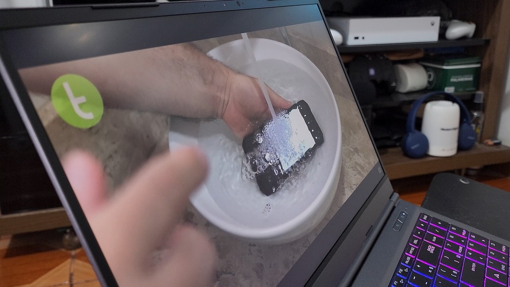 El primero fue solo mientras jugaba un juego en vivo, en Full HD. En esta prueba, la computadora portátil tardó exactamente una hora en descargarse por completo.