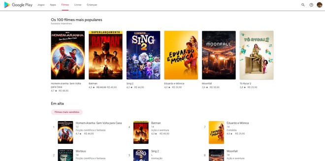 Curiosamente, las secciones «Play Livros» y «Play Films» continúan adoptando un diseño más cuadrado para la portada del título, pero han ganado secciones que anuncian promociones, eventos conmemorativos y otras noticias de la plataforma.
