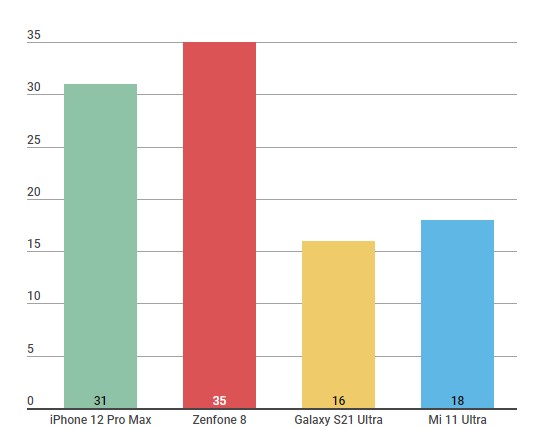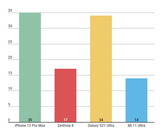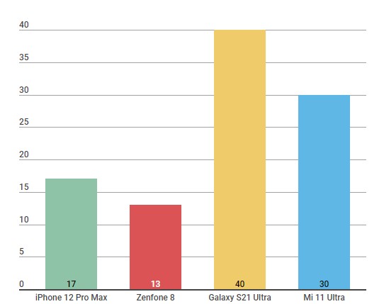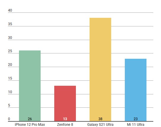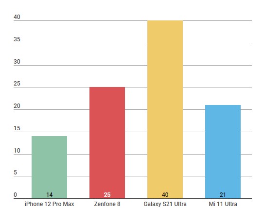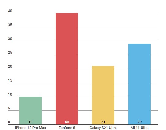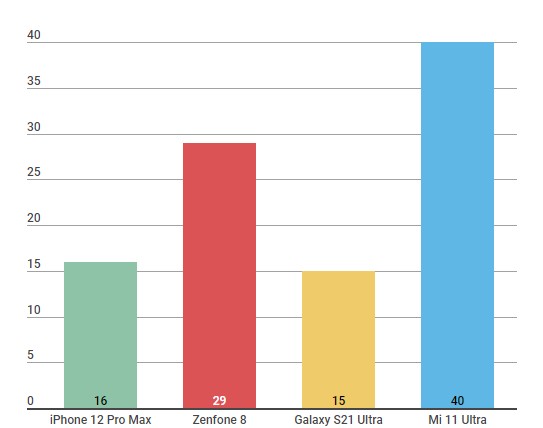 Mi 11 Ultra Galaxy S21 Ultra iPhone 12 Pro Max Zenfone 8