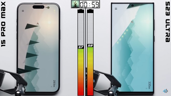 Después de completar el primer ciclo de prueba, el entusiasta abrió y cerró todas las aplicaciones utilizadas en el experimento. La etapa final tomó 1 hora y 6 minutos hasta que el Galaxy S23 Ultra se agotó por completo, mientras que al iPhone 15 Pro Max todavía le quedaba el 6% de la batería, lo que proporcionó 38 minutos adicionales de uso. Ver resultados: