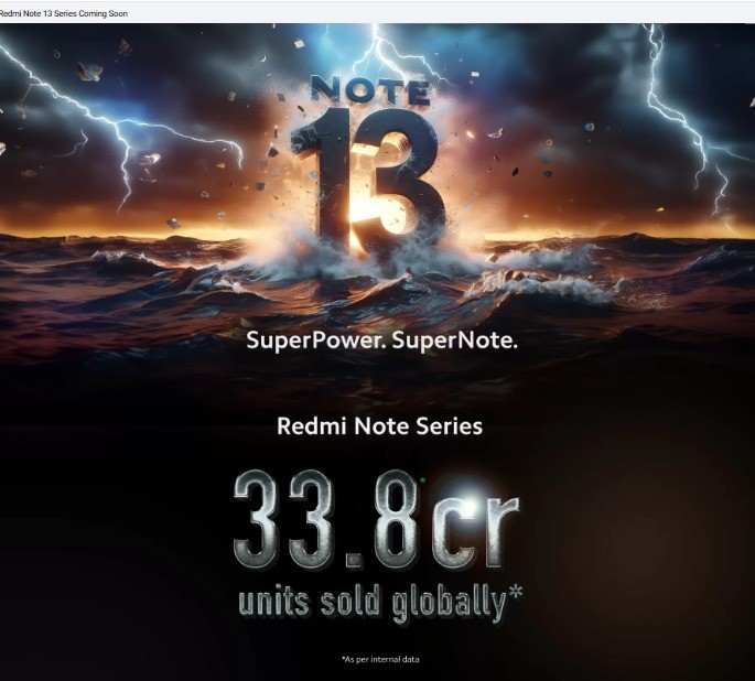 La imagen confirma que la línea Redmi Note 13 5G estará disponible en los minoristas más grandes del mercado indio: Amazon y Flipkart. El segundo póster revela que hasta ahora se han vendido más de 33,8 millones de unidades de la serie Redmi Note en todo el mundo.