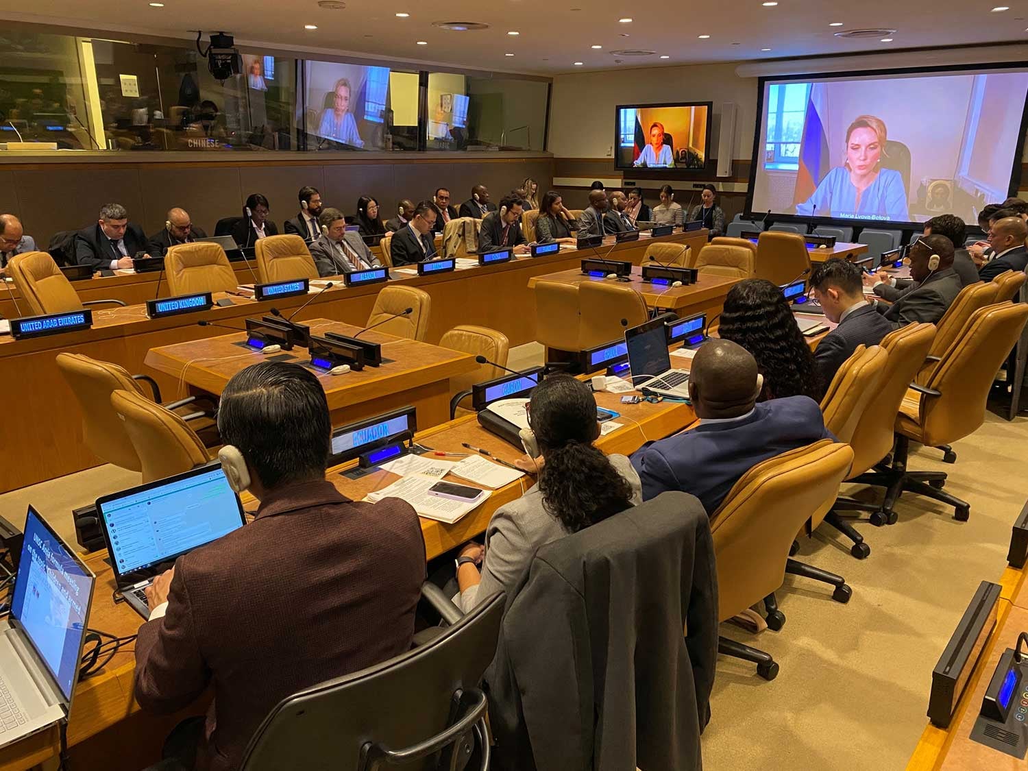 Al participar por videoconferencia, Lvova-Belova subrayó que Rusia ha acogido a más de cinco millones de ucranianos desde febrero de 2022, incluidos 700.000 niños.