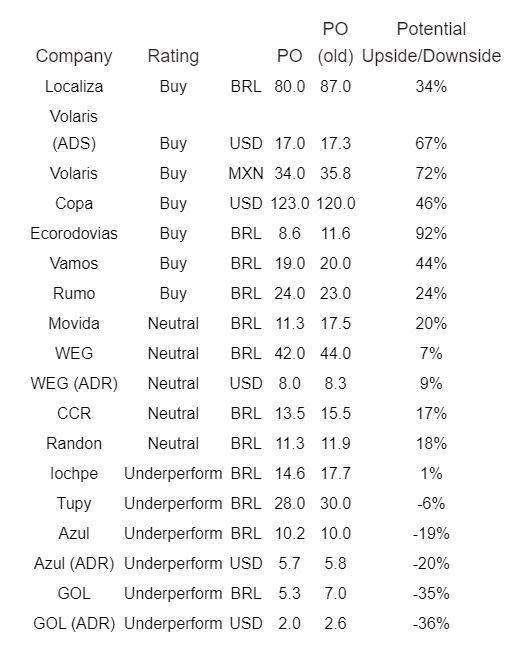 Mirando a América Latina, los analistas actualmente creen que entre las aerolíneas, Copa ofrece el mejor riesgo y recompensa en la industria, con una valoración atractiva y un impulso operativo muy fuerte, mientras observan a Azul Brazilian Airlines (azul 4) y objetivo (ogro 4) como la menos atractiva de las opciones, con un camino de recuperación posible pero aún difícil.